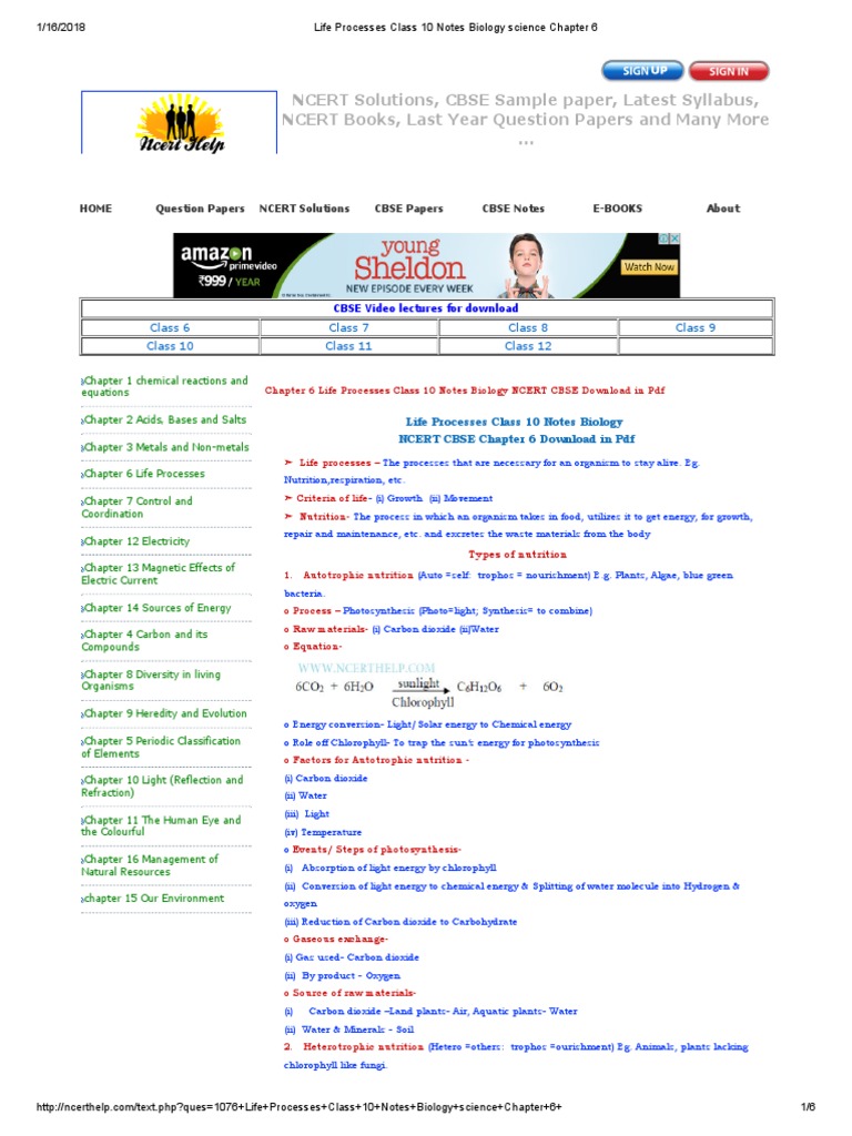 CLASSNOTES: Notes Class 10 Biology Life Process